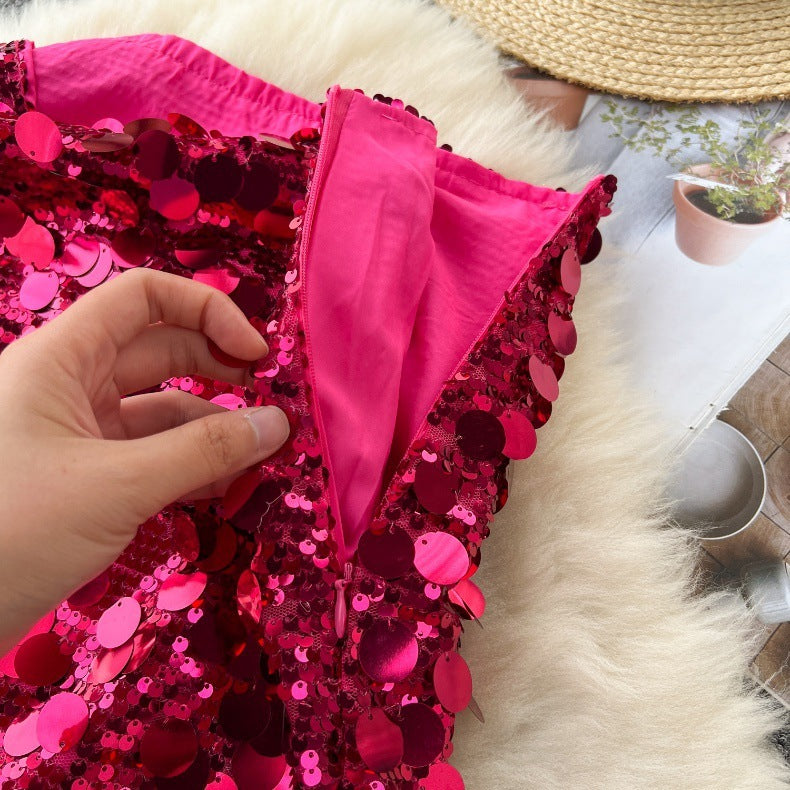 Get ready to shine at every event with our Shimmer Sequin Party Skirt, designed for the modern socialite who loves to make a statement. This eye-catching A-line skirt is adorned with large sequins that reflect light beautifully, creating a glamorous and mesmerizing effect. Available in captivating colors—purple, rose, silver, and black—this skirt is perfect for parties, nights out, or any occasion where you want all eyes on you. Made from premium polyester fiber, it offers comfort and a flattering fit, making it a must-have for your special-occasion wardrobe.
